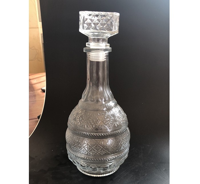 蒙砂酒瓶是在制品玻璃上,粘附一定大小面積的玻璃色釉粉,玻璃瓶廠經(jīng)過(guò)580~600℃的高溫烘烤,使玻璃色釉涂層凝結(jié)在玻璃外表,并顯現(xiàn)出具有與玻璃主體不同顏色的一種裝飾辦法。粘附玻璃色釉粉,可用排筆涂刷,亦可用膠輥滾涂。經(jīng)過(guò)絲印加工,能夠得到蒙砂面的樓空?qǐng)D案。 其辦法是:在玻璃制品外表上,絲印一層由阻熔劑構(gòu)成的圖案紋樣。